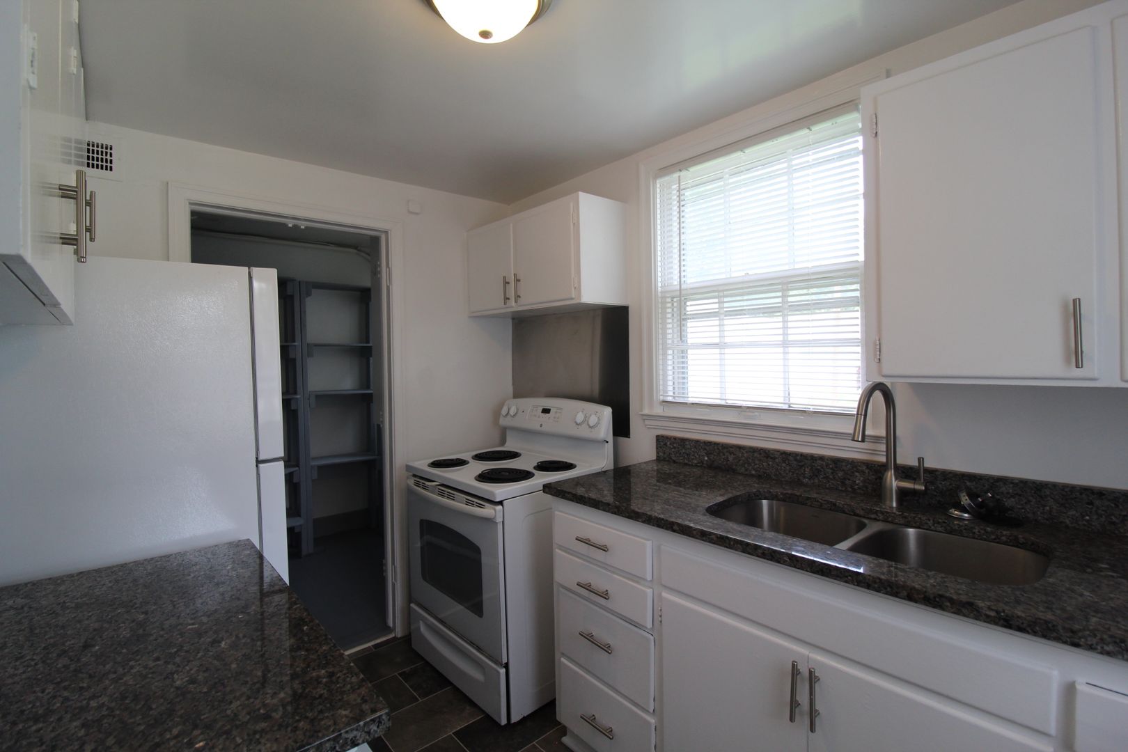 This two bedroom duplex offers granite countertops, a refrigerator, a stove, an oven, central air conditioning, gas heat, full size washer and dryer connections, and the lawn care is provided.